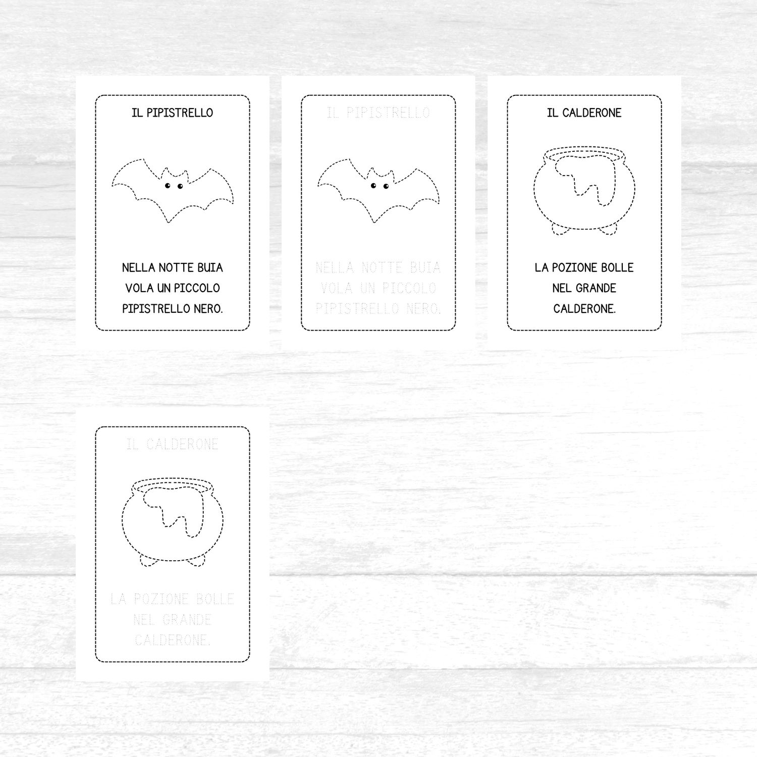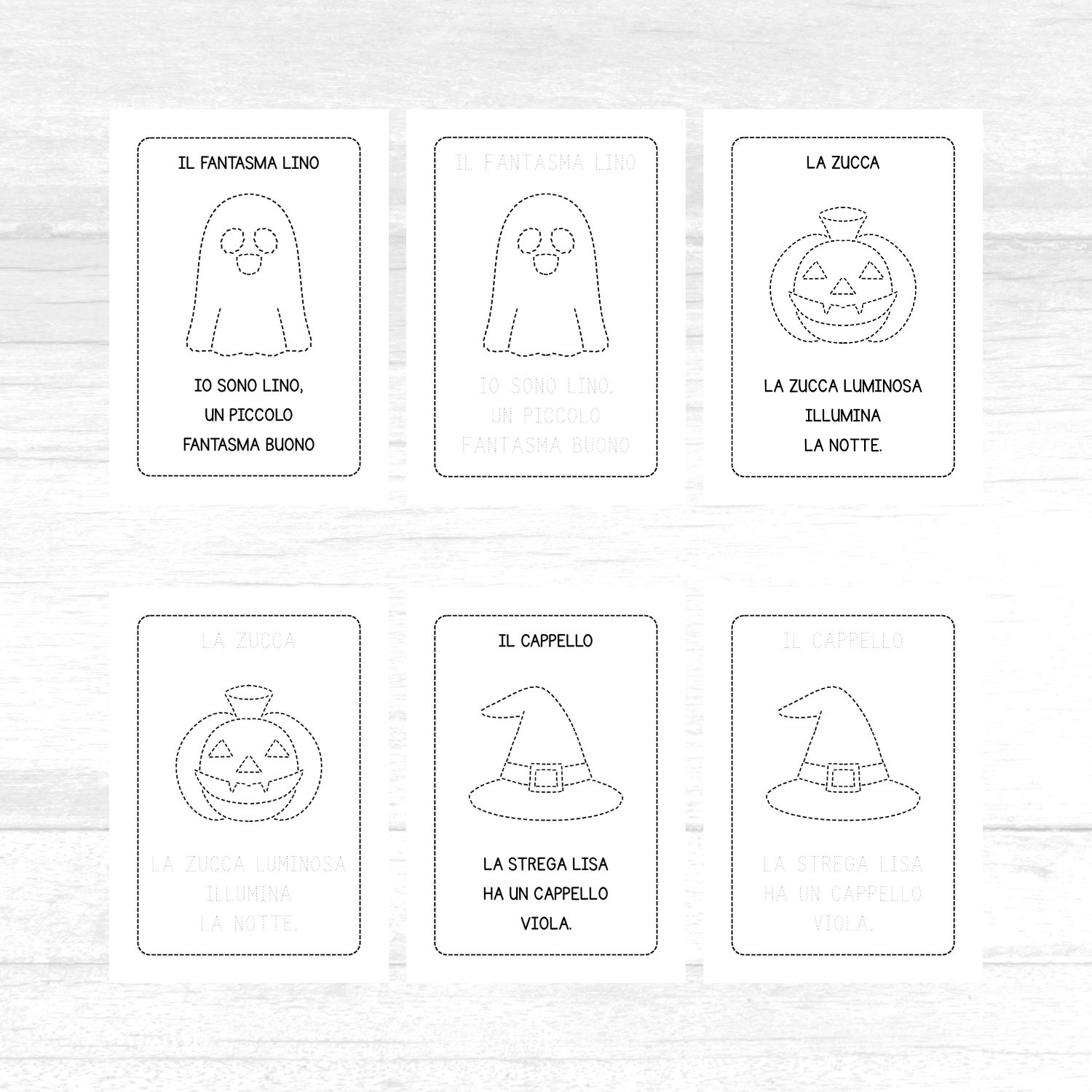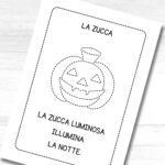 Ogni frase è corredata da un disegno a tema Halloween, i cui bordi possono essere ripassati con la matita. Quest’attività è utile per favorire la manualità e la coordinazione oculo-motoria, lavorando sul pregrafismo.