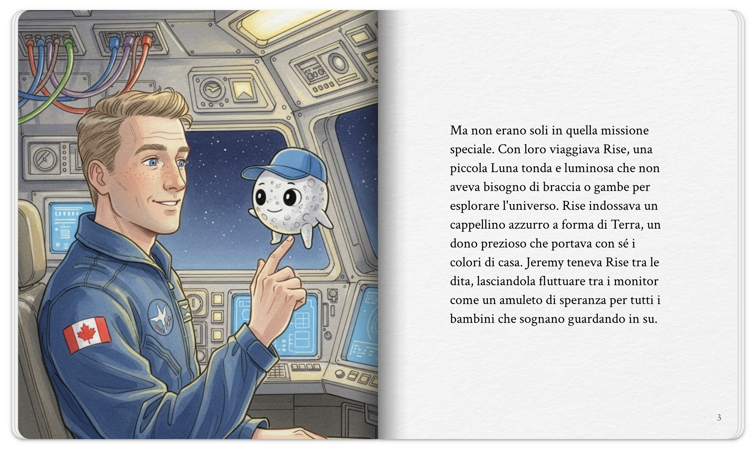 Protagonisti sono gli astronauti della Missione ARTEMIS2 e Rise, la piccola nuvola di latte che viaggia con loro come simbolo di speranza.