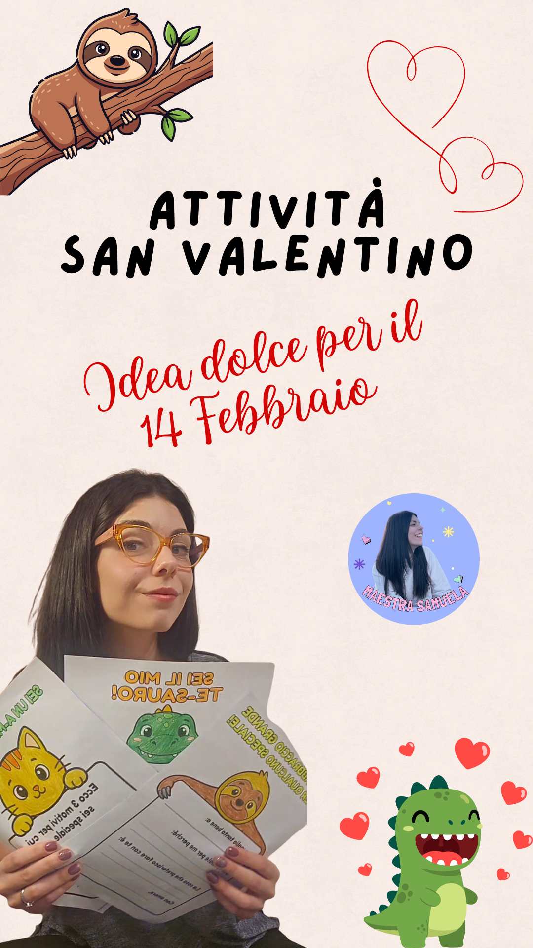 Manca pochissimo al 14 febbraio e se cerchi un’attività super dolce… l’hai trovata! ✨ Ho creato queste 3 schede speciali giocando con le parole: 🦖 Il TE-SAURO (perché sei un tesoro!) 😻 L’ A-MICIO (per un amico speciale) 🦥 Il Bradipo (per un abbraccio gigante) I bambini possono colorare, ritagliare e scrivere un pensiero gentile.