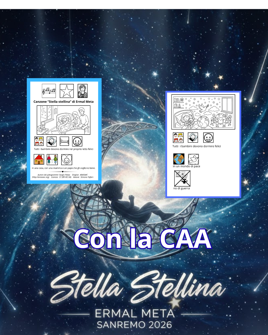 Riflessione sulla canzone “Stella stellina” che Ermal Meta ha cantato a Sanremo attraverso due immagini da colorare e l’uso dei pittogrammi Arasaac.