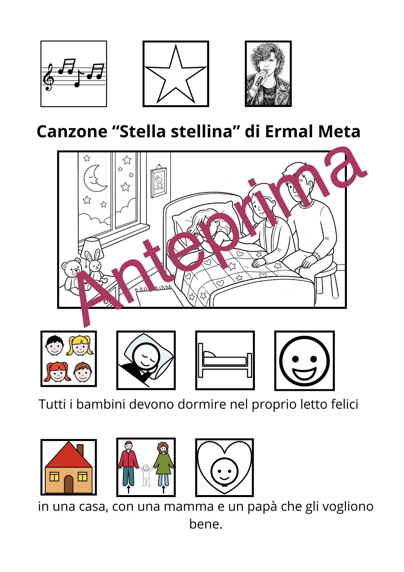Riflessione sulla canzone “Stella stellina” che Ermal Meta ha cantato a Sanremo attraverso due immagini da colorare e l’uso dei pittogrammi Arasaac.