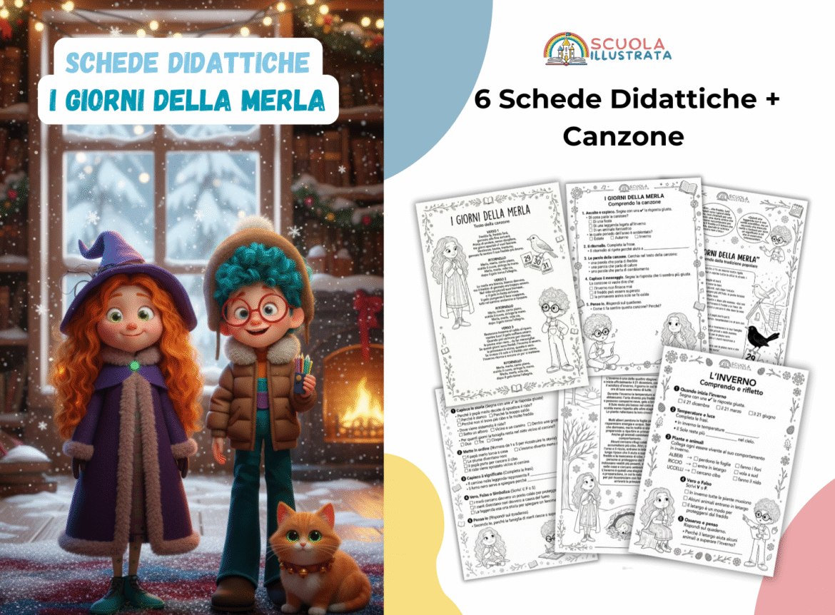 Un percorso illustrato di schede didattiche pensato per accompagnare i bambini della scuola primaria nella scoperta dei Giorni della Merla, una tradizione popolare italiana che permette di lavorare in modo integrato su leggenda, tempo atmosferico e stagione invernale.