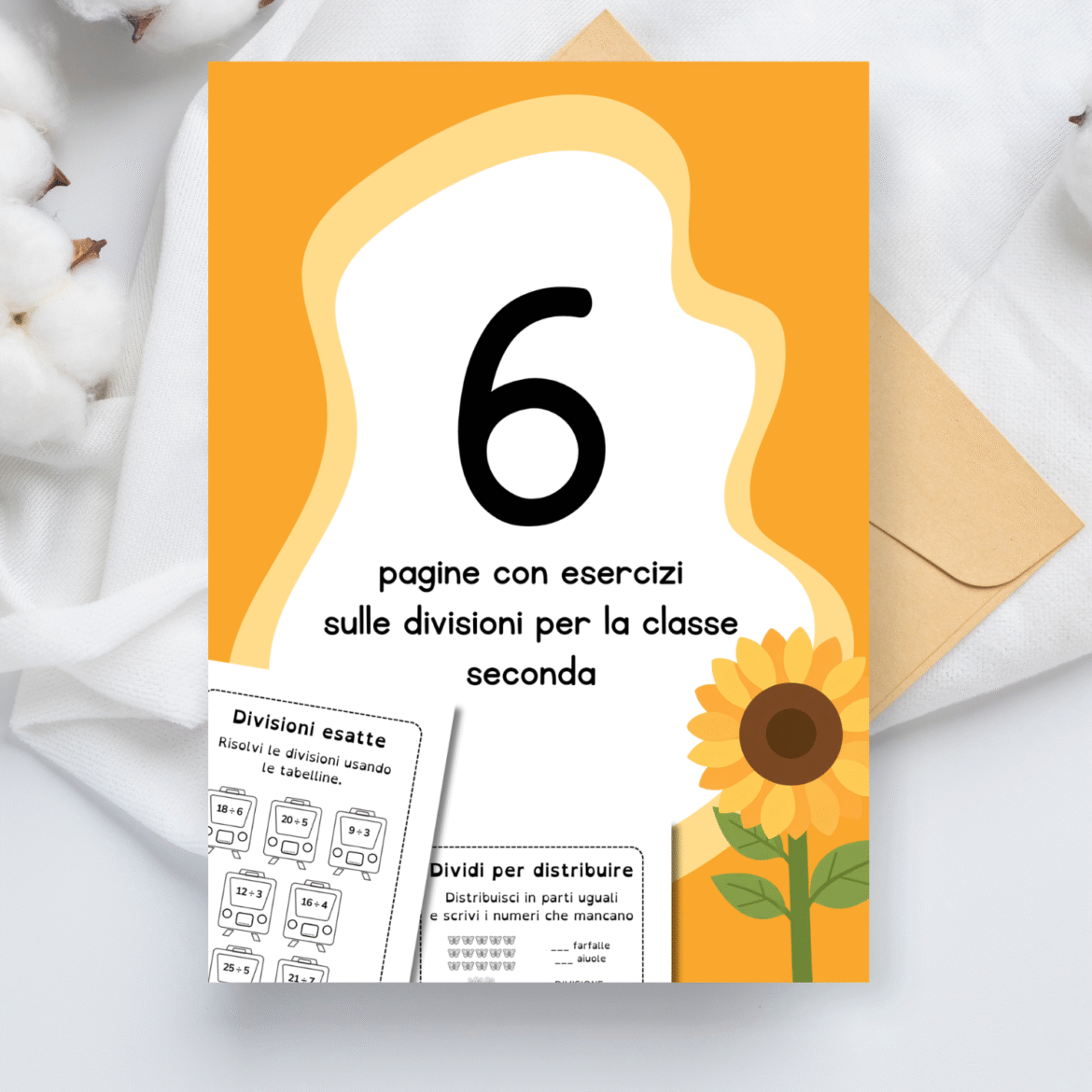 Questo PDF include 6 schede didattiche sulle divisioni ideali per bambini della classe seconda della scuola primaria.