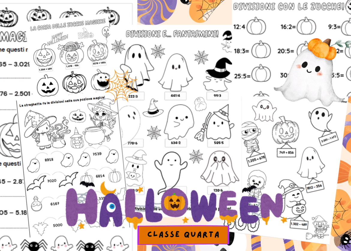 Kit di Halloween – Classe Quarta Un divertente kit di 11 schede didattiche a tema Halloween, pensato per gli alunni di classe quarta. Le attività propongono esercizi di matematica e logica con un tocco magico e spaventoso, perfetti per ripassare divertendosi nel periodo di Halloween! 🎃