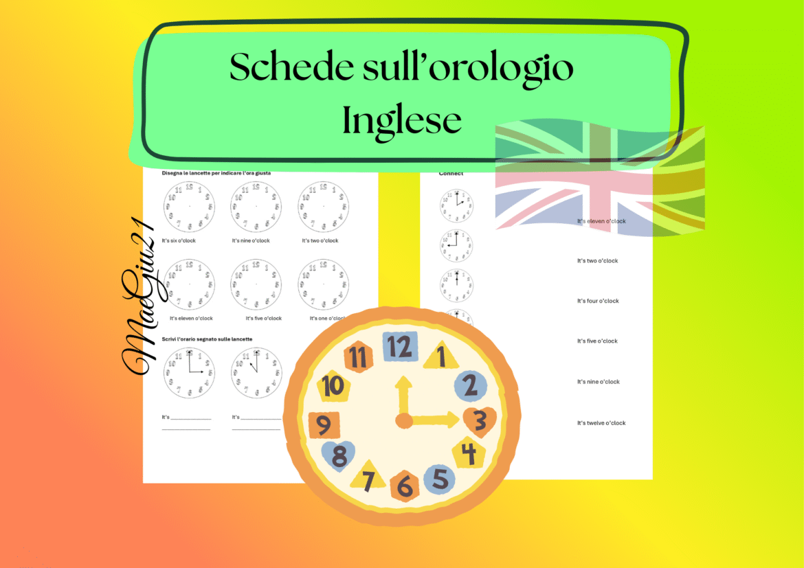 Due schede di esercizi sull’orologio in inglese (ora precisa – o’clock).