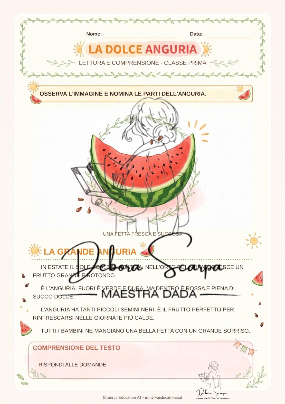 SCHEDE DIDATTICHE E FLASH CARDS PER SCOPRIRE IL FRUTTO DELL’ANGURIA