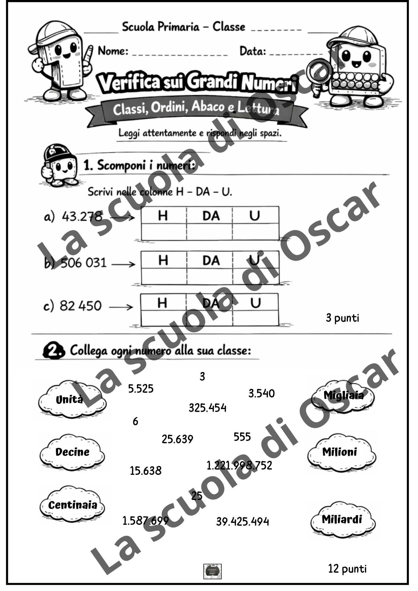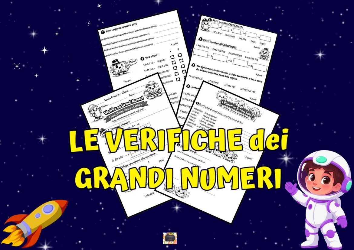 Questo PDF di 4 pagine offre un percorso completo di verifica e consolidamento sui grandi numeri per la classe quarta e quinta della Scuola Primaria.