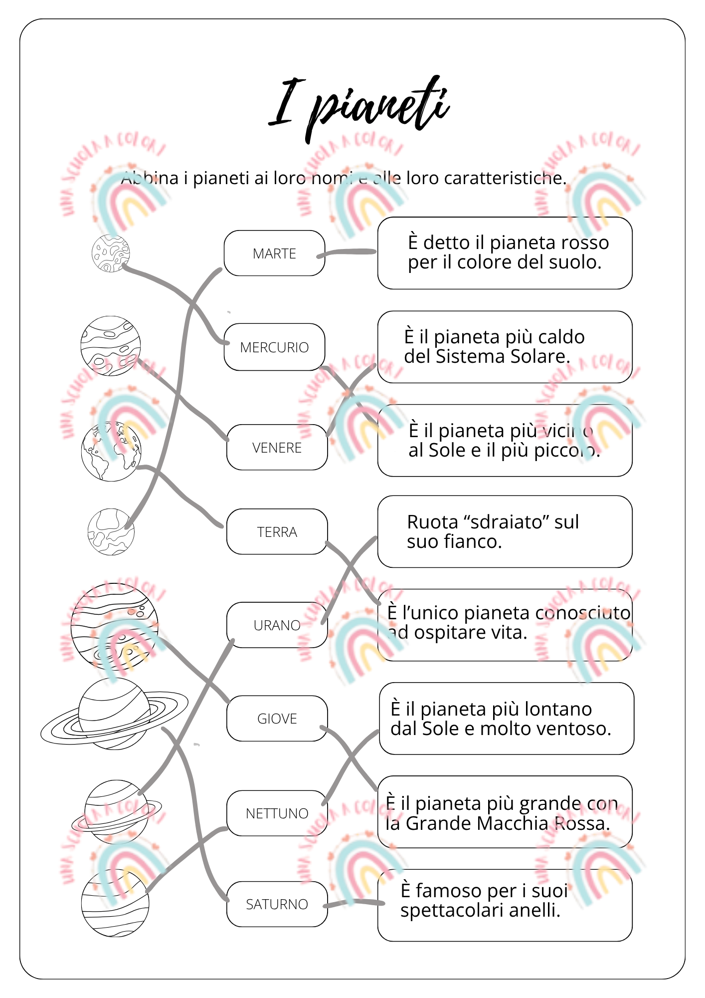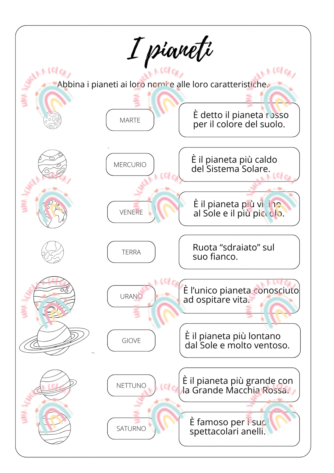 Collega ogni pianeta al suo nome e alla sua caratteristica.