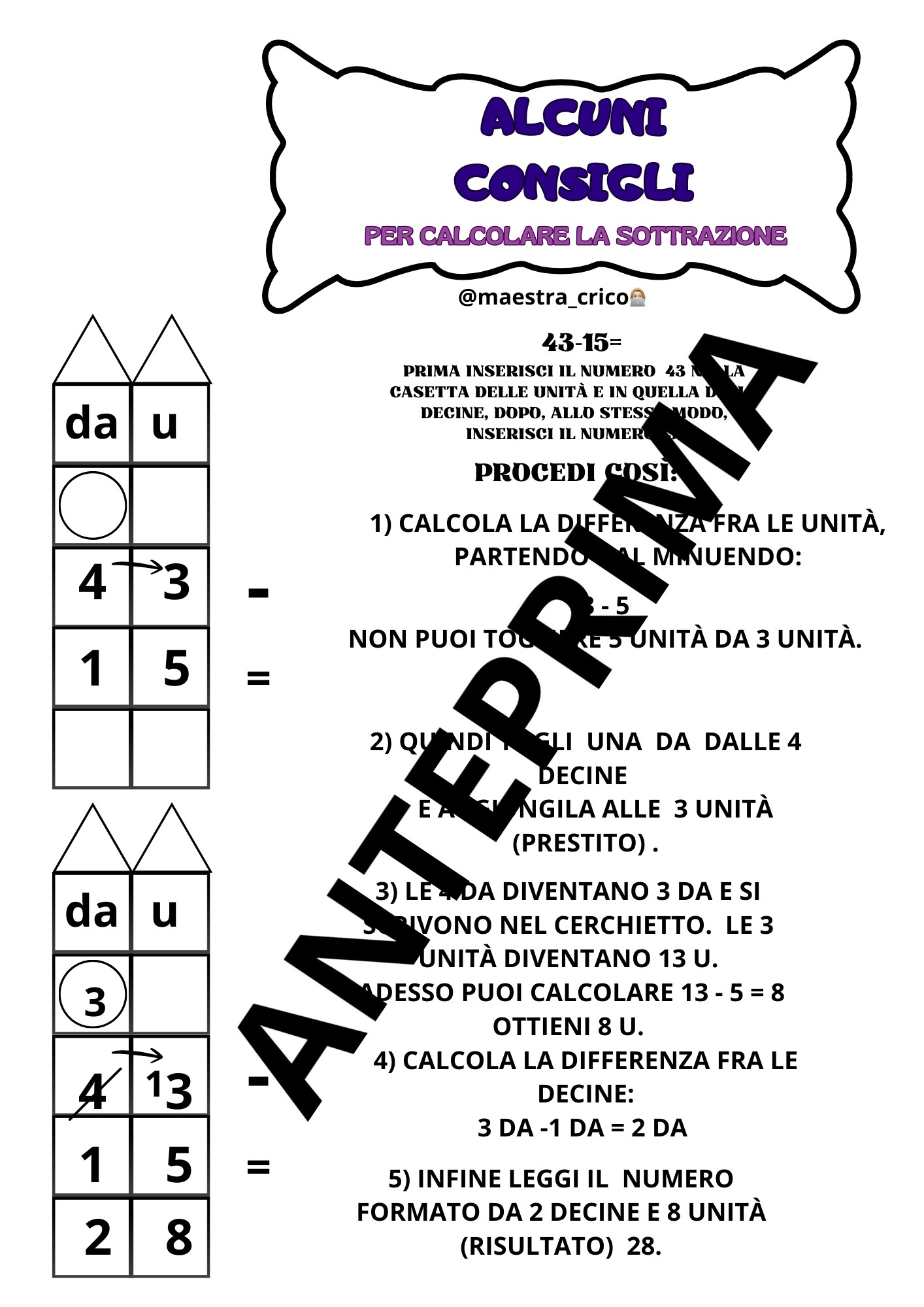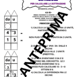 - Una spiegazione dettagliata del metodo della “casetta” per le sottrazioni in colonna con il prestito.