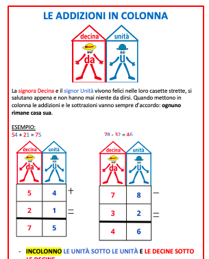 SPIEGAZIONE PRIMA PARTE ADDIZIONI IN COLONNA: con Signora Decina  e Signor Unità con esercizi con già tabelle