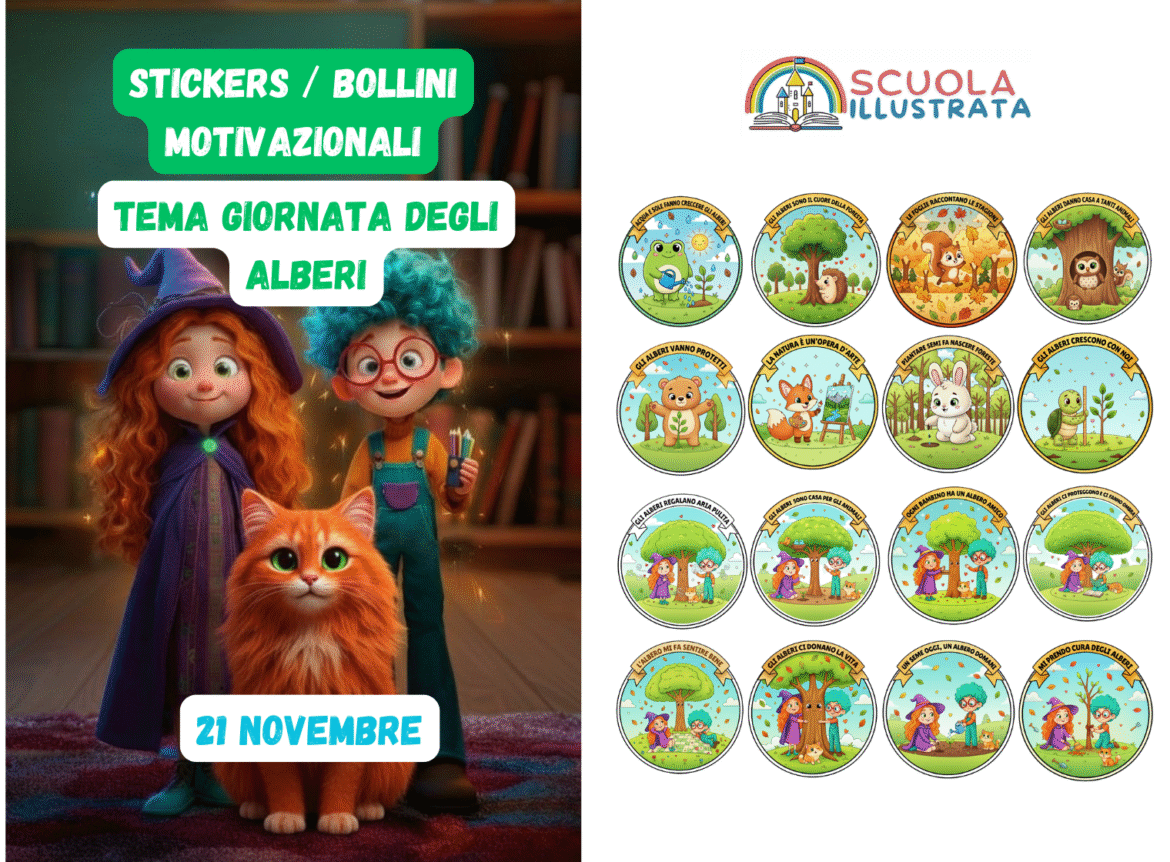 Porta un tocco di magia verde in classe con la nostra collezione di sticker dedicati alla Giornata degli Alberi!