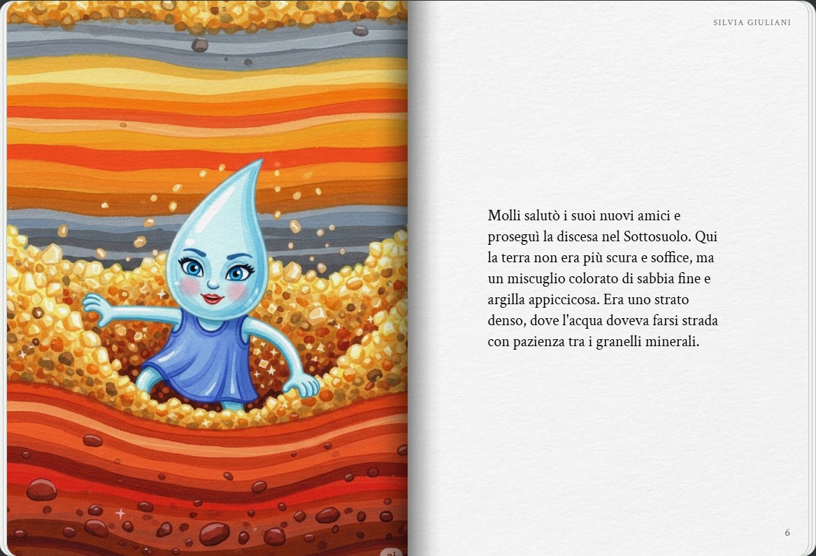 Molli, una piccola molecola di acqua, ci accompagnerà alla scoperta di tutto quello che la riguarda (le proprietà dell’acqua, il ciclo dell’acqua, i cambiamenti di stato…) ed esplorerà anche il mondo circostante (aria, suolo, calore, materia…). Storybook in PDF. Creazione degli storybook con Gemini.