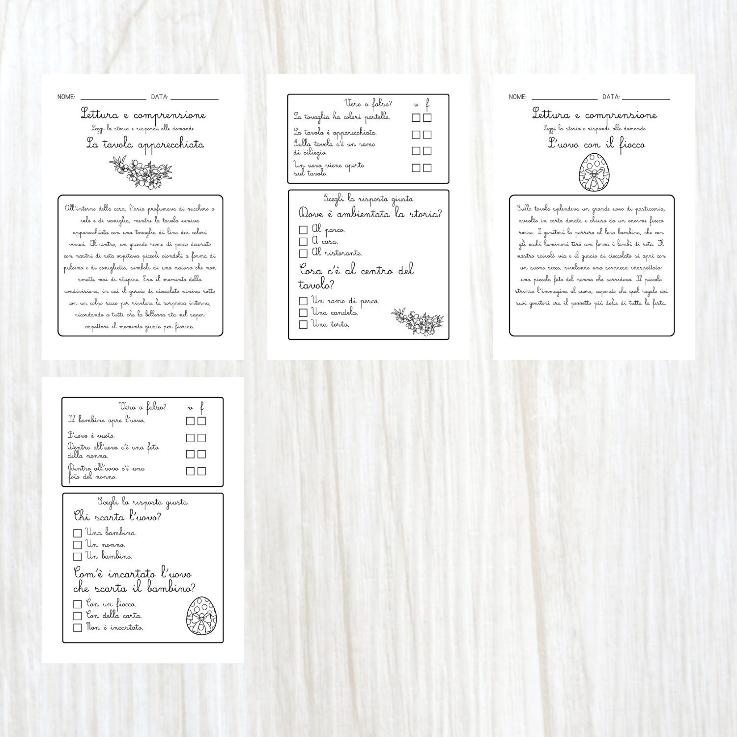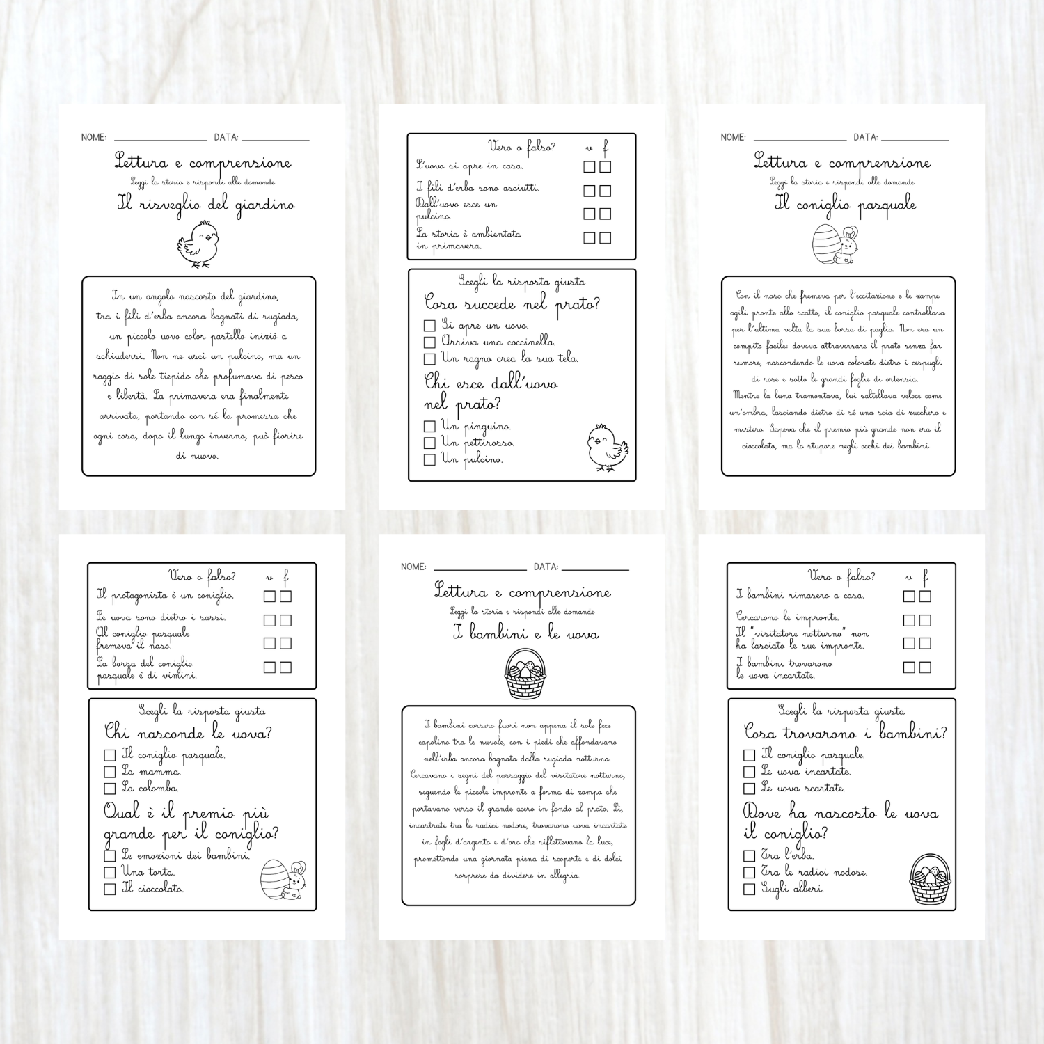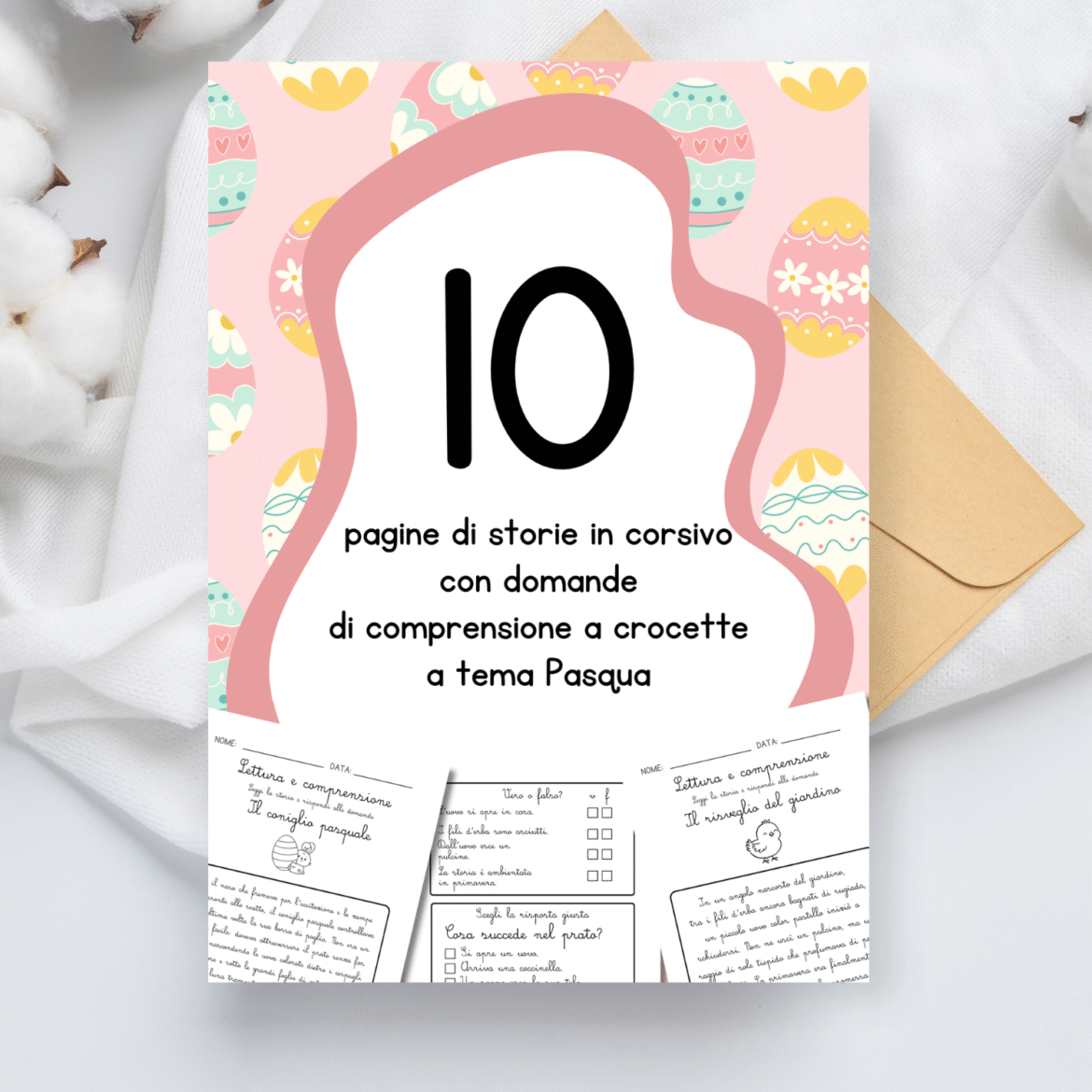 Il pack didattico racchiude in tutto 10 pagine ed è ideale per le prime letture autonome in corsivo da parte dei bambini. Le storie sono tutte a tema Pasqua.