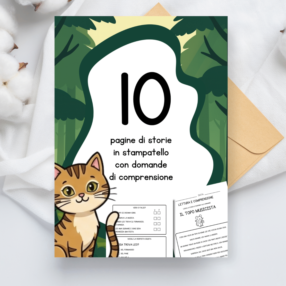 Storie in stampatello maiuscolo con domande di comprensione a crocetteDigitale