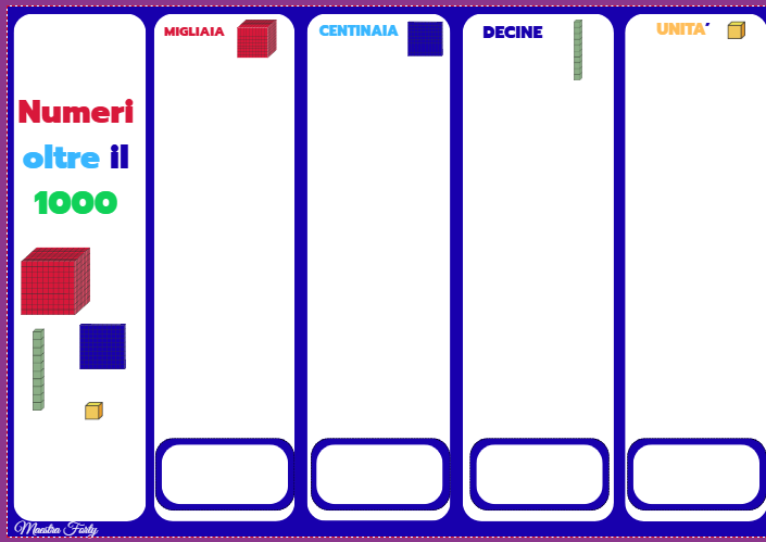 Strumento didattico per la conoscenza dei numeri oltre il 1000 e i calcoli in colonna. La tabella va stampata fronte retro e plastificata. Il foglio dei BAM i cui colori sono puramente casuali comprende due serie da 9 elementi ciascuno. La prima facciata della tabella consente la scrittura dei numeri con la rappresentazione dei blocchi. Gli studenti dopo aver formato il numero possono trascriverlo sul quaderno e scrivere in lettere o scomporre. La seconda facciata serve per le addizioni e le sottrazioni in colonna sempre con il supporto pratico e laboratoriale del materiale