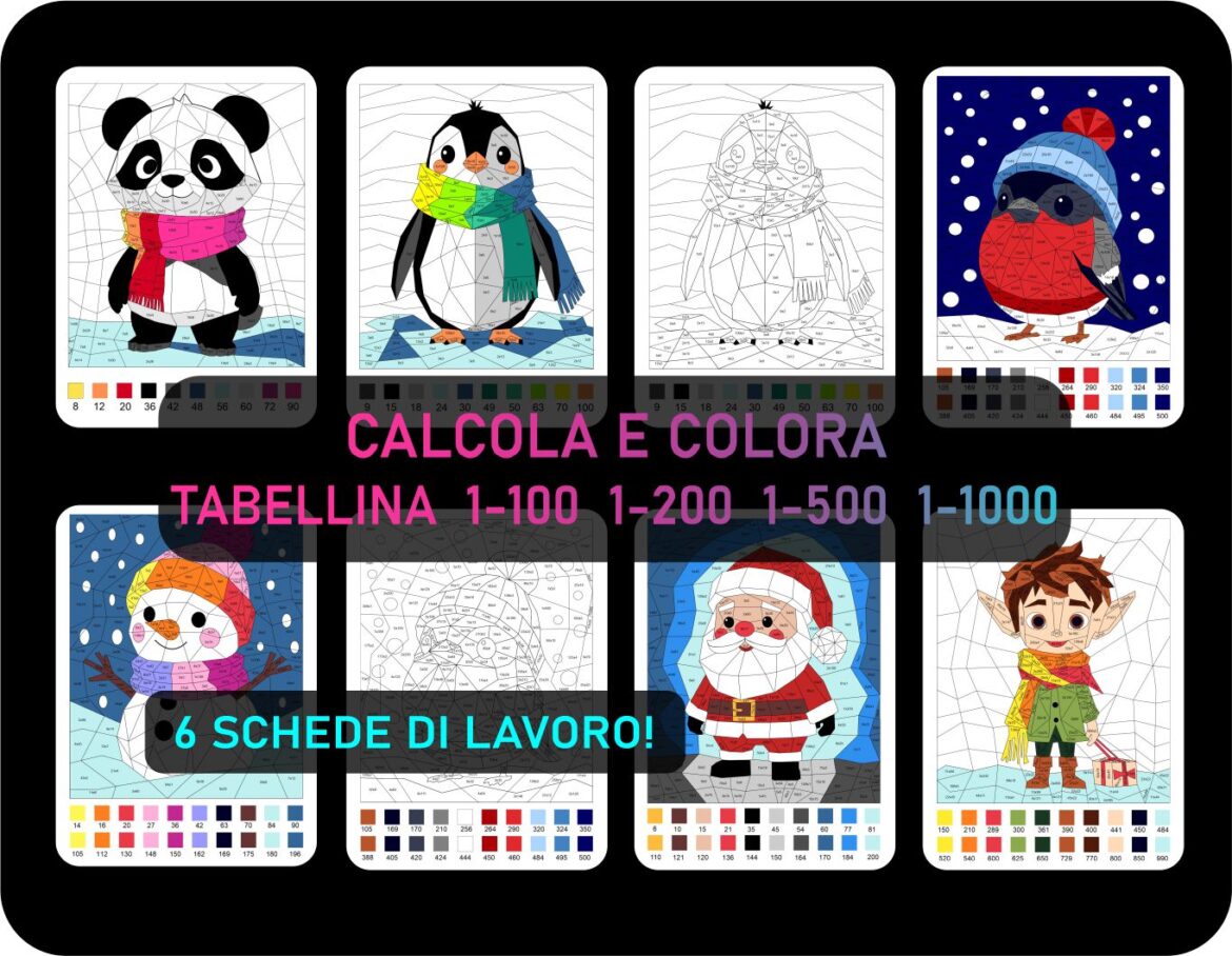 🎄 COLORING MATEMATICO INVERNALE con le MOLTIPLICAZIONI da 1 a 100, 1–200, 1–500 e 1–1000!