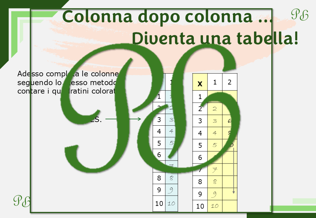 E poi arriva il tempo delle tabelline che, per chi ha problemi di memoria troppo breve come me, sono un tormento. Allora proviamo ad aiutarci con i colori e le tabelle!
