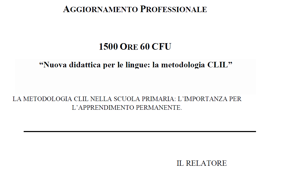 Qui troverete la mia tesina relativa al corso di 1500 ORE 60 CFU “Nuova didattica per le lingue: la metodologia CLIL”
