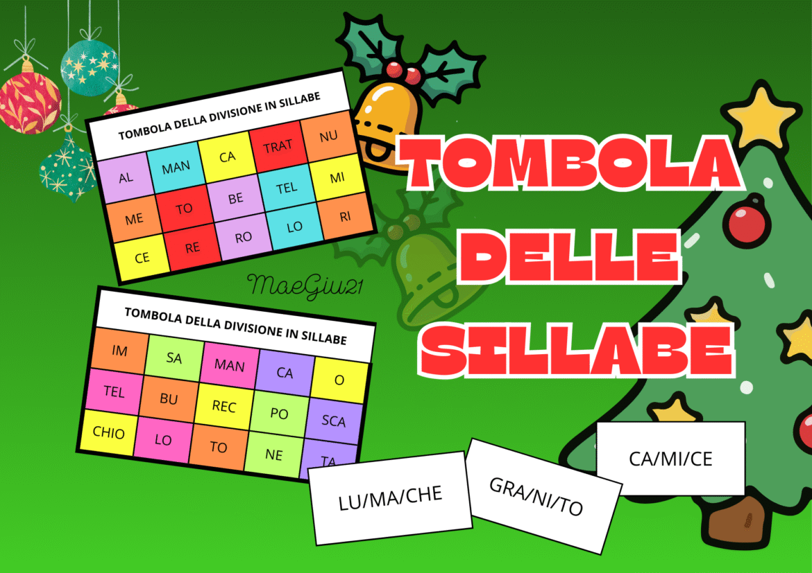 Tombola della divisione in sillabe perfetta per il periodo natalizio per un ripasso ortografico divertente, ma adatta per ogni periodo dell’anno.