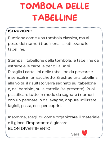 Ecco una tombola completa già pronta per ripassare e consolidare divertendosi le tabelline.