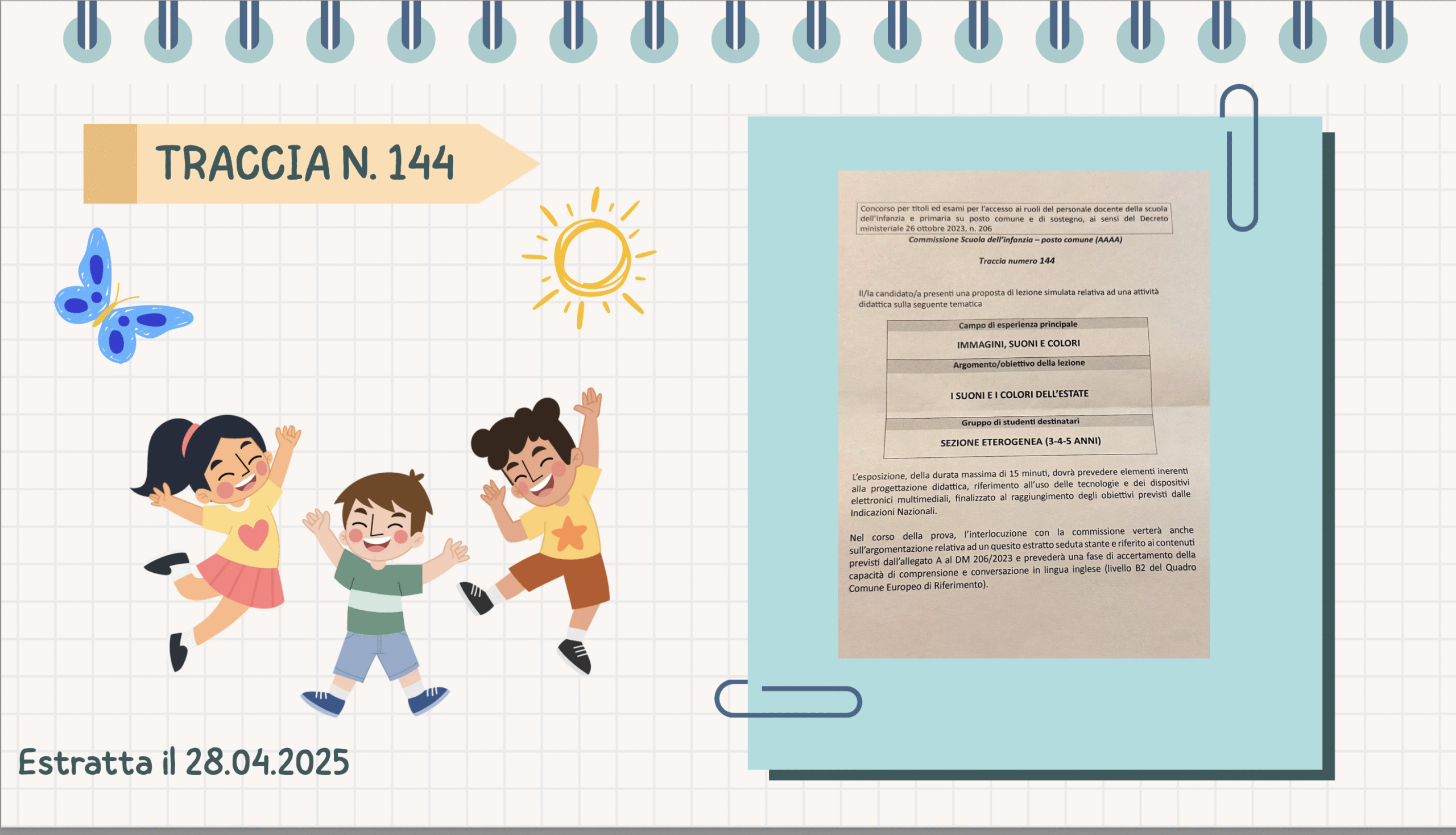 Traccia sviluppata per la classe di concorso della Scuola dell’infanzia.