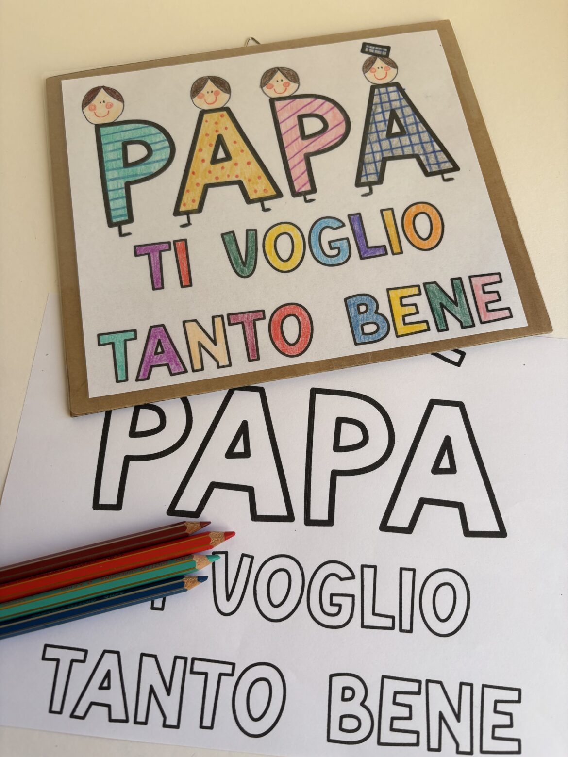 Un pensiero per la festa del papà. Un foglio tutto da colorare e disegnare, per trasformarlo in un piccolo quadro da donare a papà.