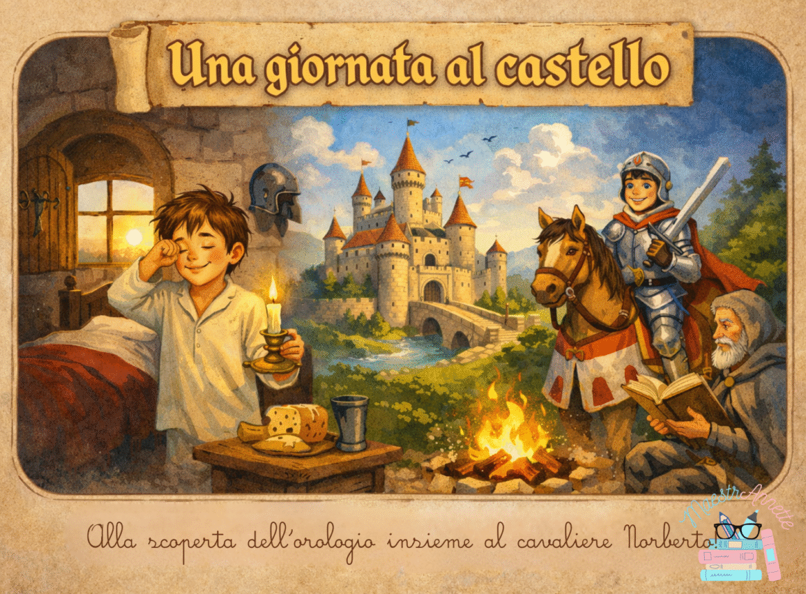 Questo materiale nasce per aiutare i bambini a leggere l’orologio in modo significativo, attraverso una storia coinvolgente ambientata nel Medioevo.