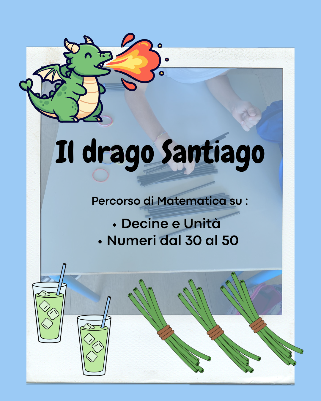 • scheda sulla storia del drago Santiago (personaggio e storia creati per introdurre il percorso e le cannucce);