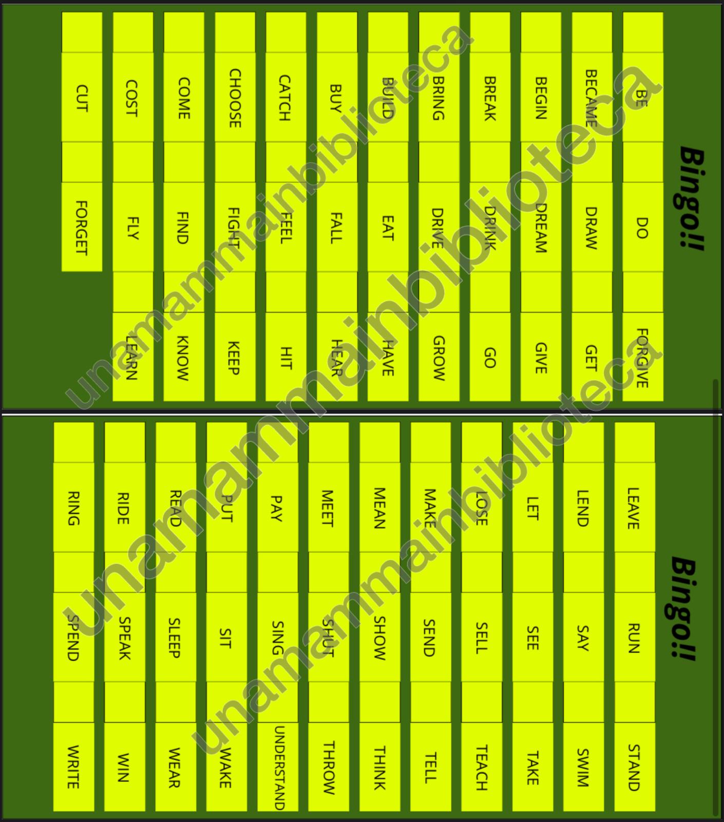 Ad ogni ragazzo viene consegnata una tessera che presenta i verbi  nella forma irregolare  (Simple Past).