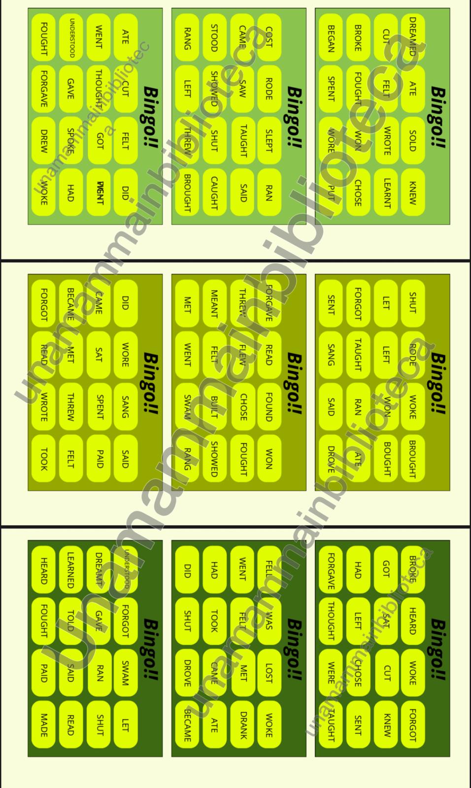 Prima di assegnare la vittoria ,chi ha fatto Bingo,  deve declinare i verbi nell’ultima forma verbale corretta (PAST PARTICIPLE).