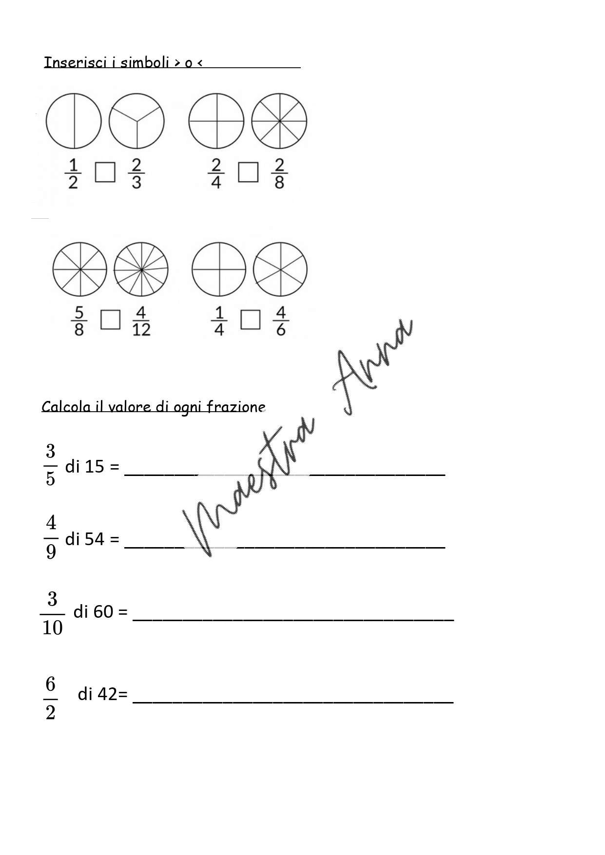 Prova scritta completa sulle frazioni, ideale per la verifica bimestrale nella scuola primaria.