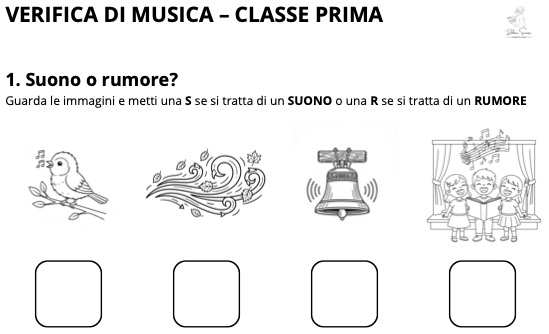 VERIFICA DI MUSICA PER LA CLASSE PRIMA SU SUONI E RUMORI NATURALI E ARTIFICIALI