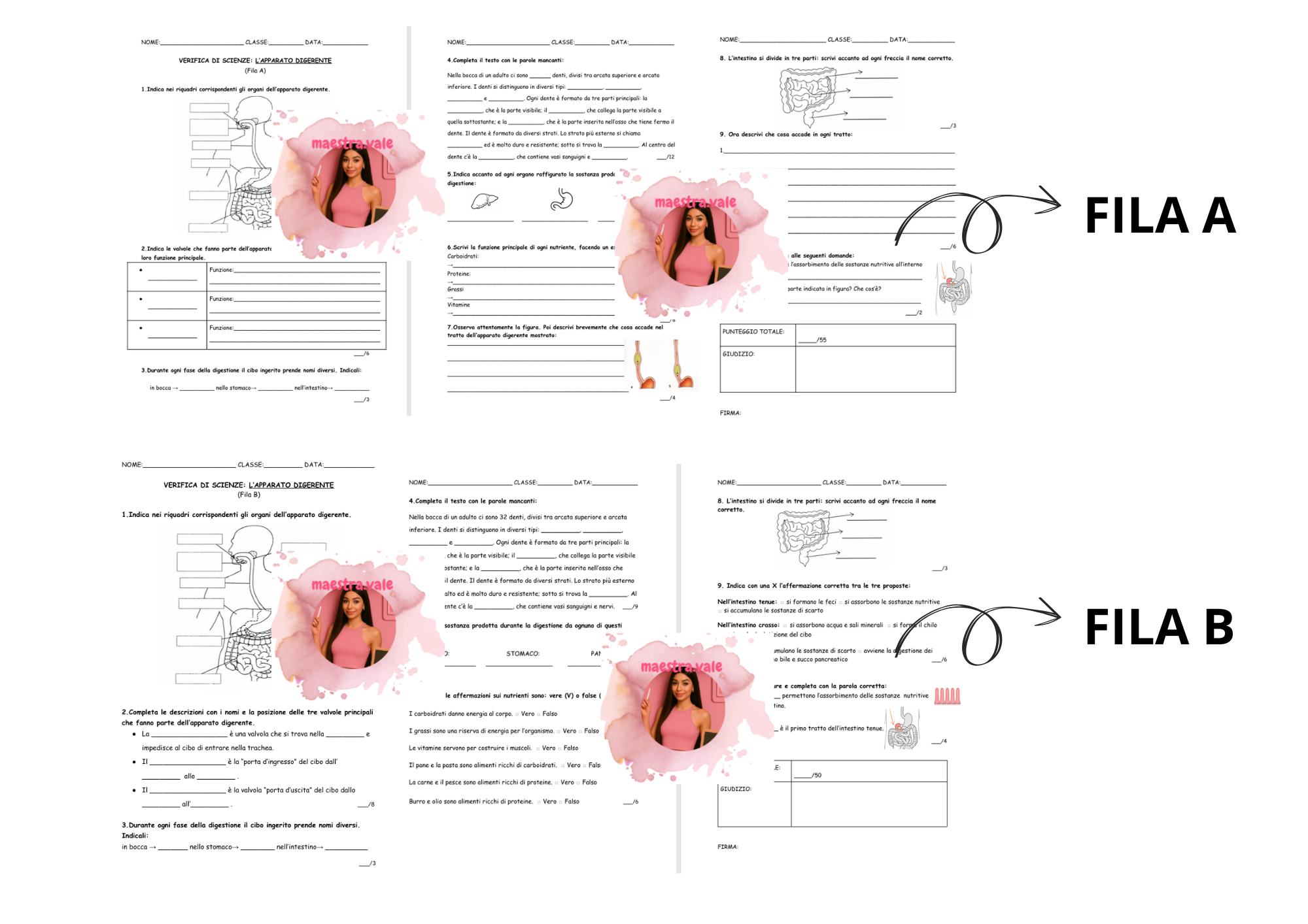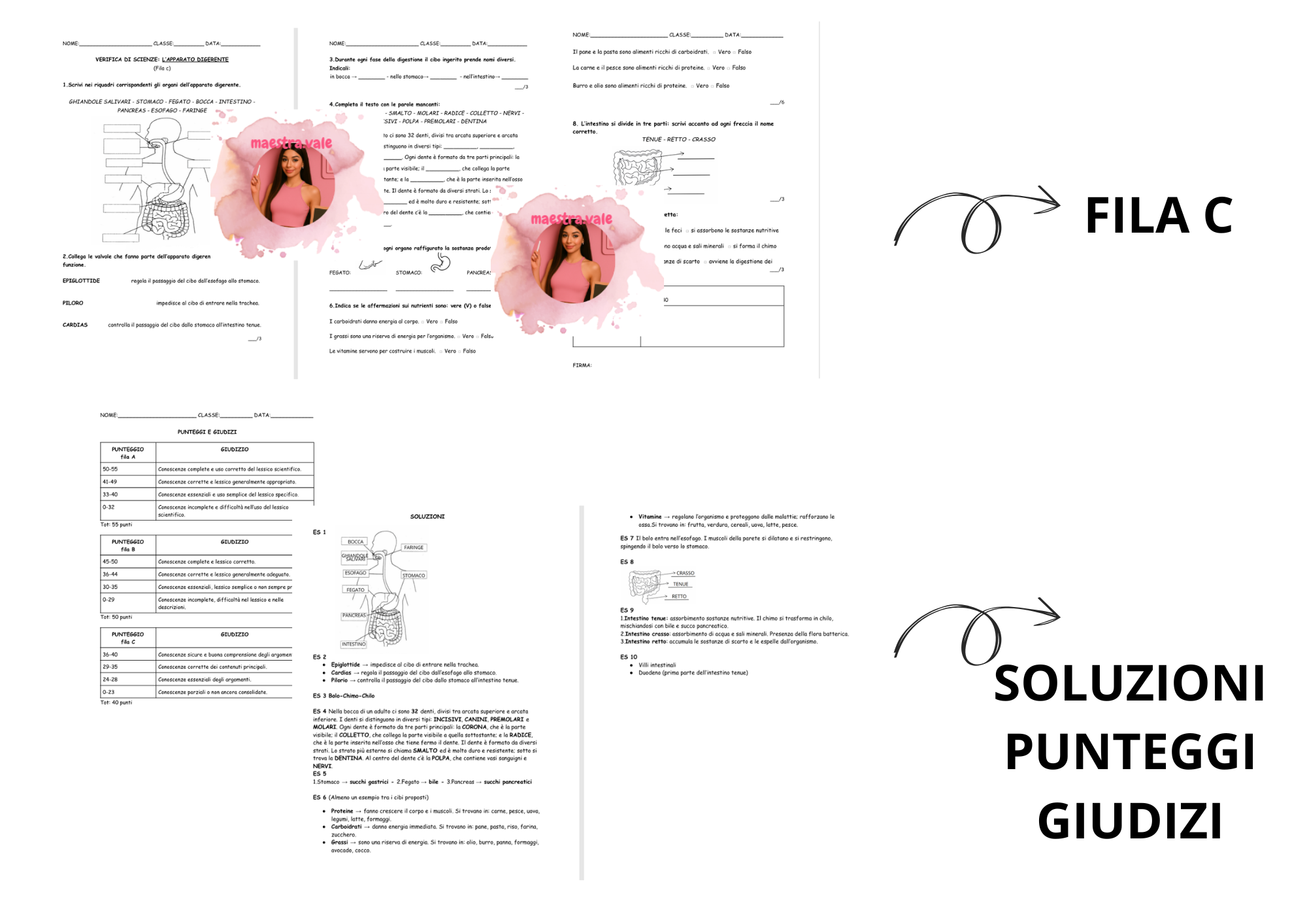 Verifica sull’apparato digerente – tre livelli (fila A, B, C)