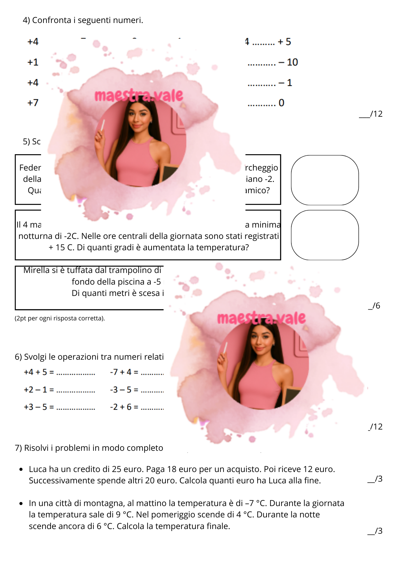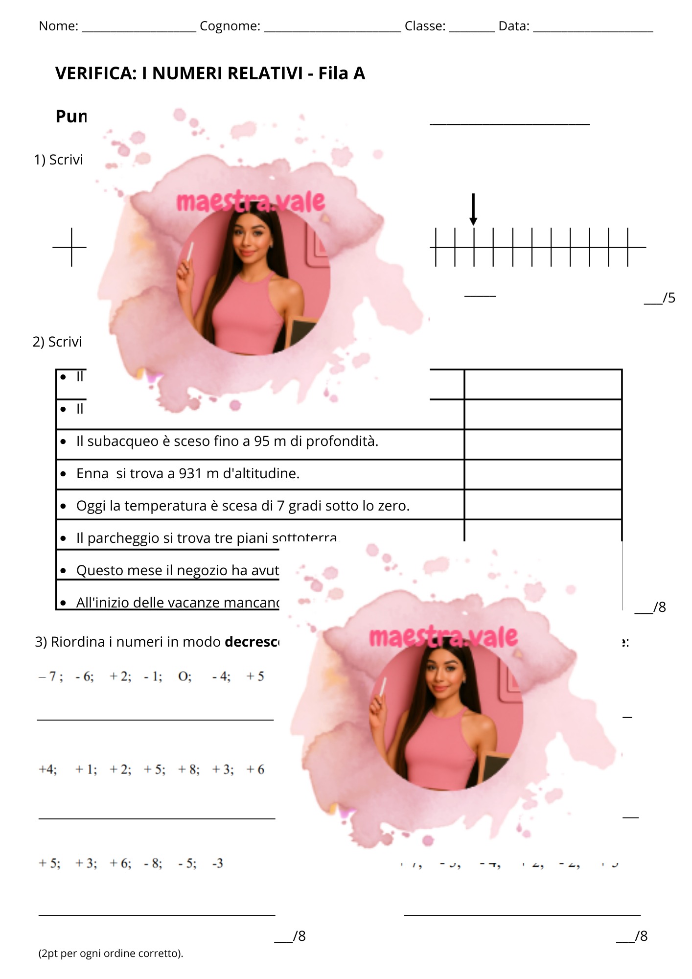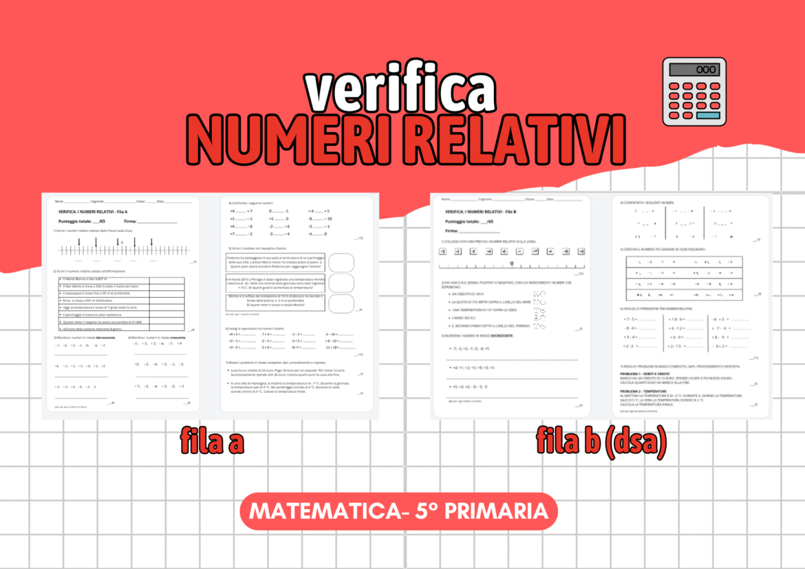 Verifica pronta all’uso sui numeri relativi, pensata per gli alunni della classe quinta della scuola primaria.