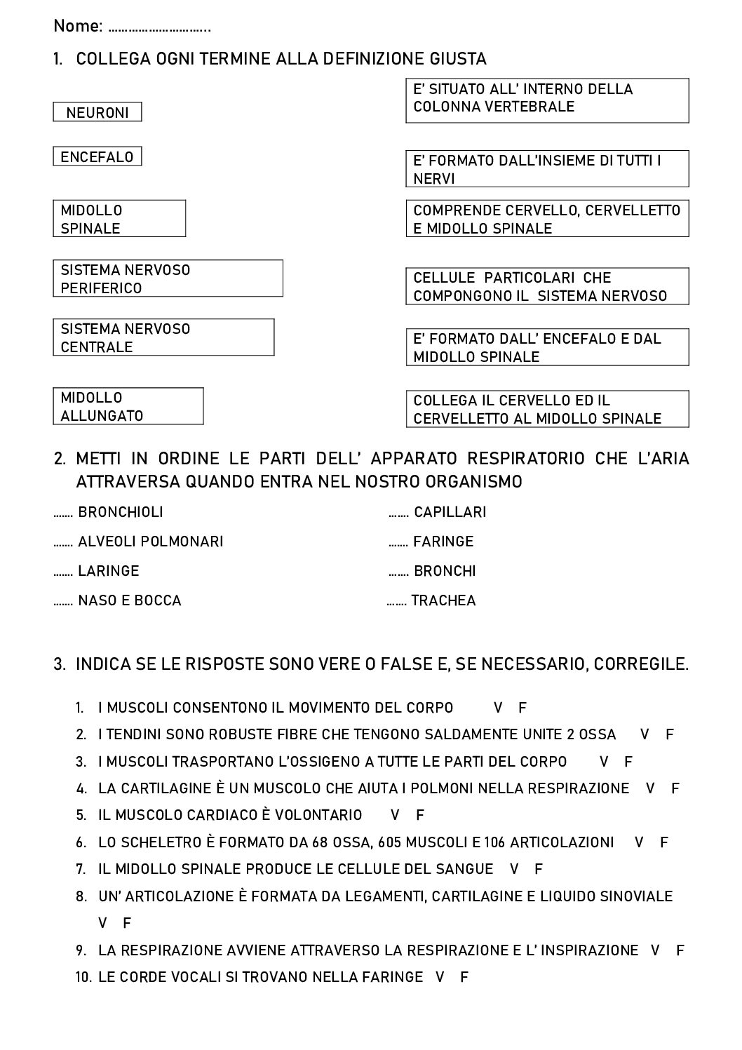Breve scheda riassuntiva, da usare come esercitazione o verifica, inerente ad alcuni degli apparati trattati.