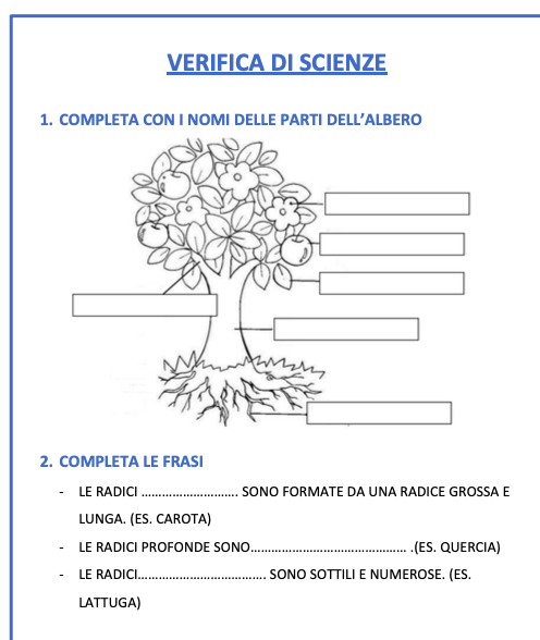 VERIFICA PIANTA E FOGLIE CLASSE SECONDA PRIMARIA