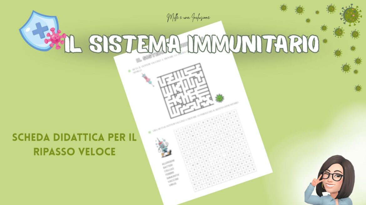 Scheda per un ripasso veloce sul sistema immunitario, attraverso un gioco. Adatto per bambini della scuola primaria e per alunni della scuola secondaria di I grado con disabilità intellettive gravi e autismo.