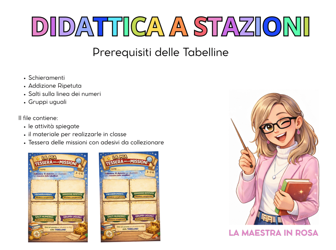 - Quattro stazioni interattive: Ogni stazione si concentra su un prerequisito fondamentale per le tabelline.