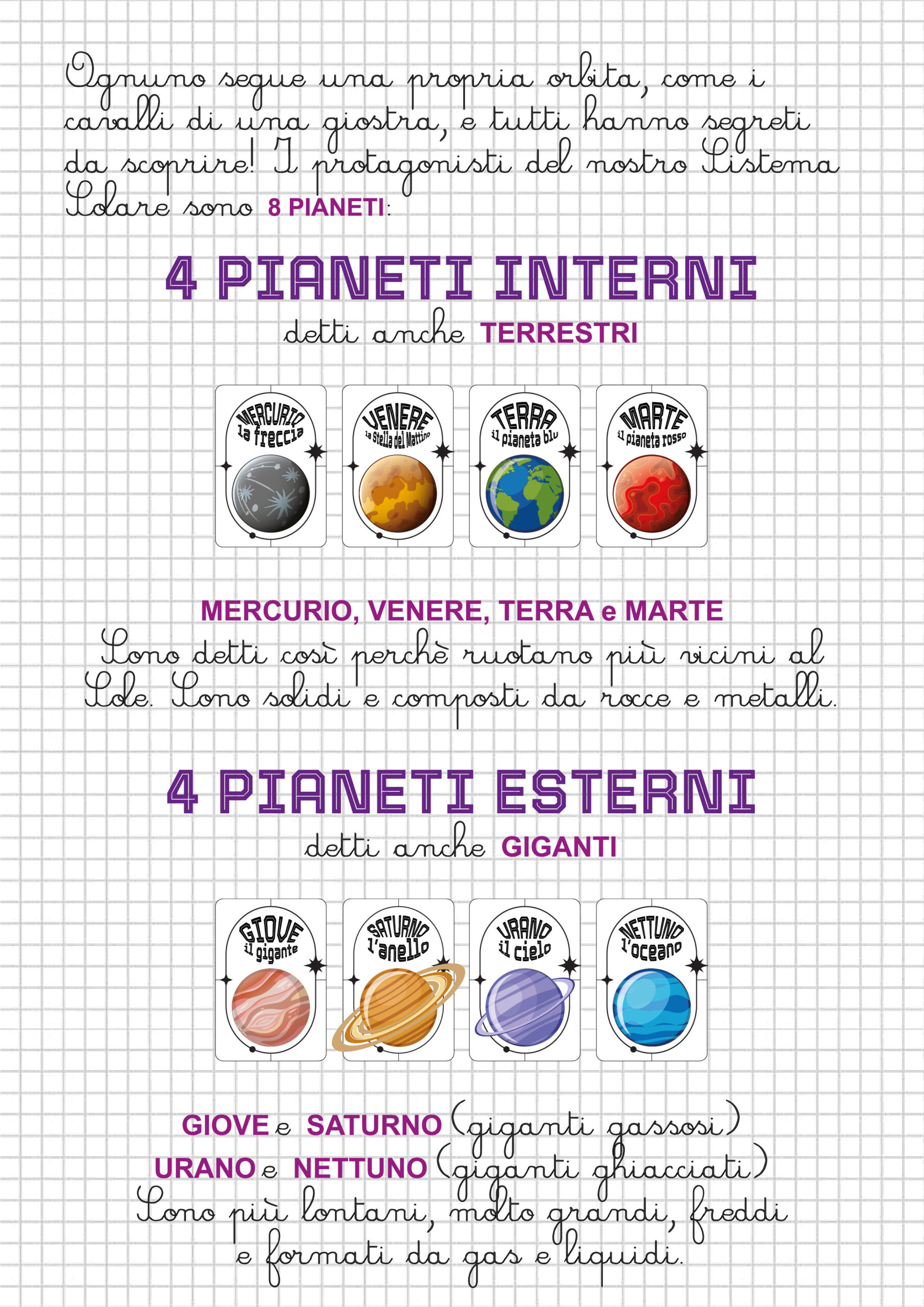 Schede, costruzioni, mappe e attività sul quaderno per consolidare gli apprendimenti.