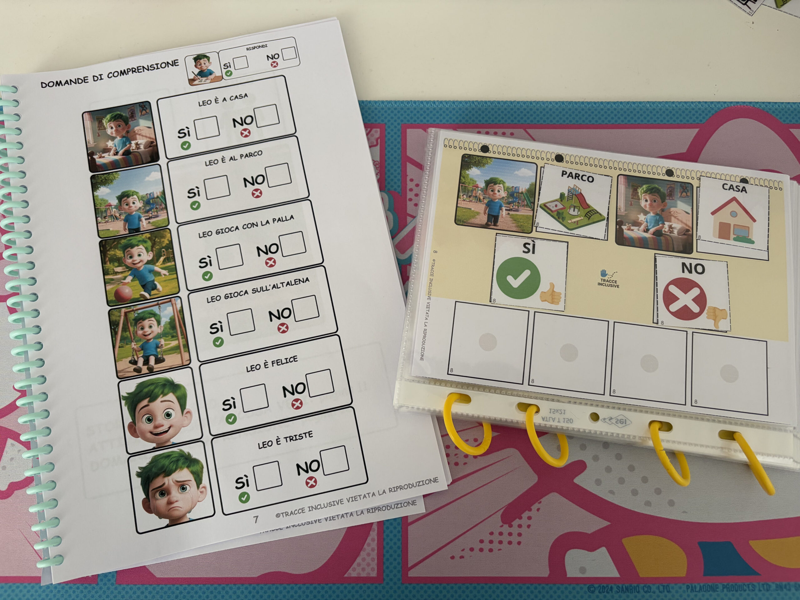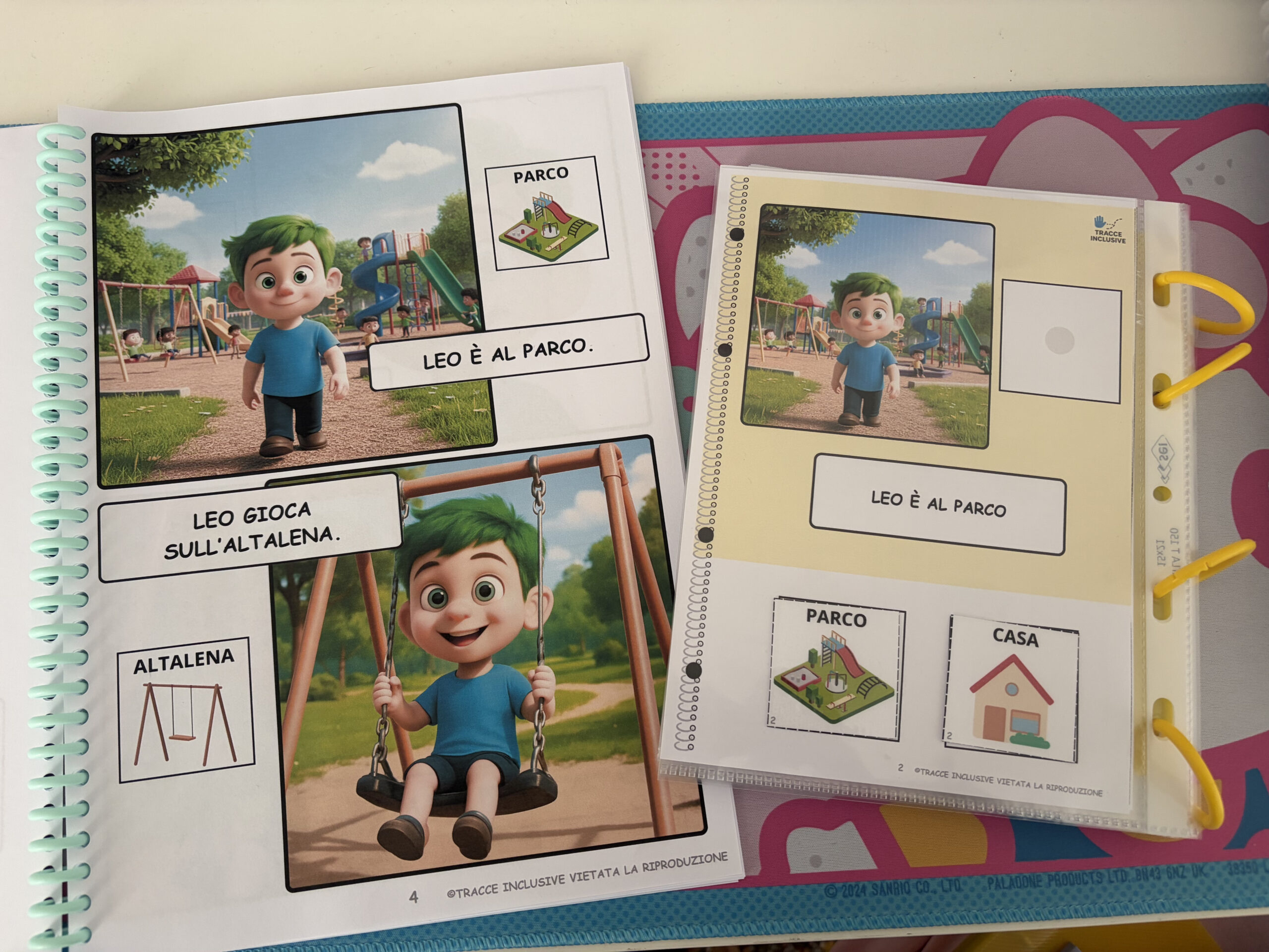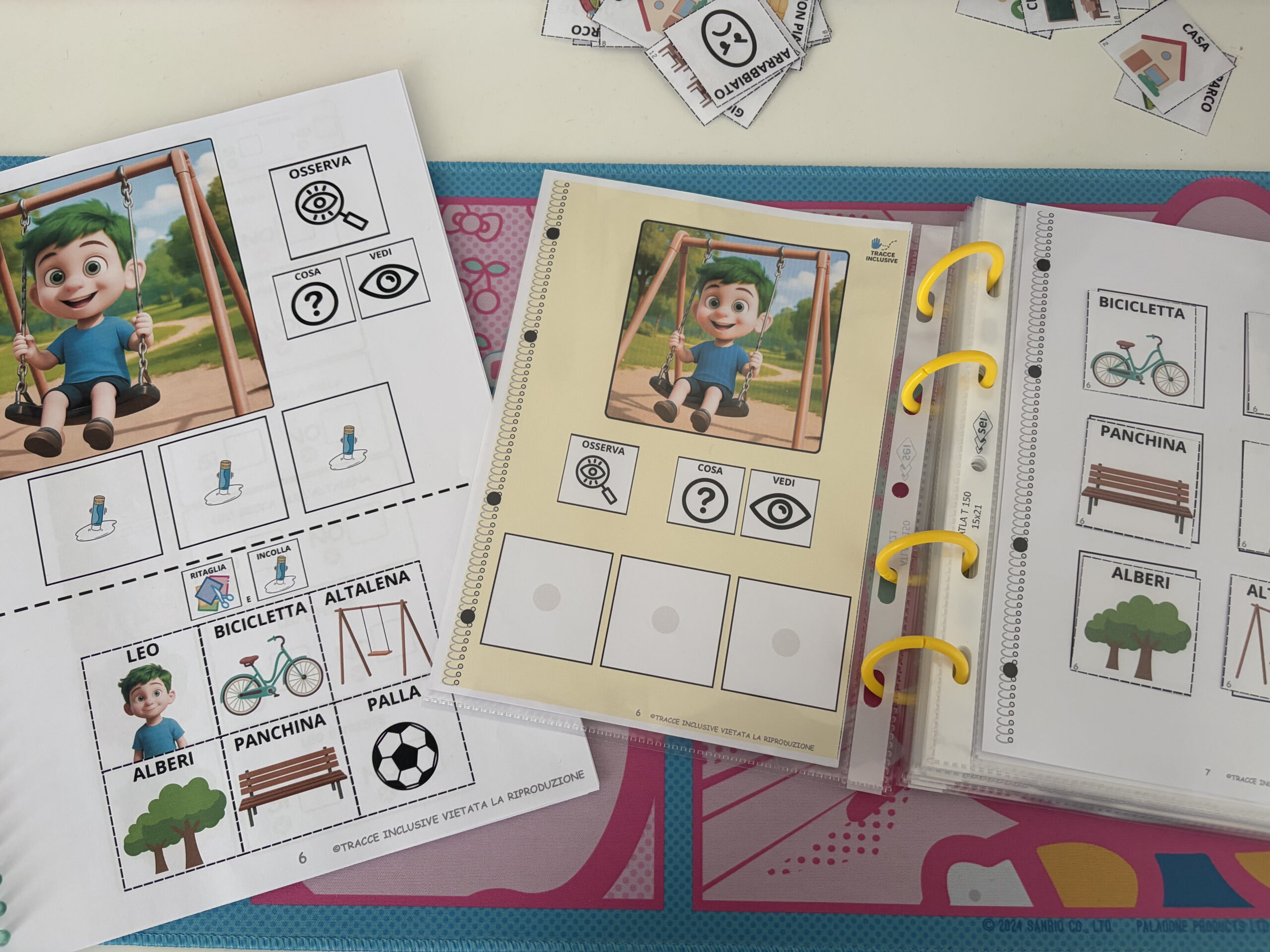 Un quaderno manipolativo in cui il bambino può partecipare attivamente all’attività utilizzando simboli e immagini da ritagliare e posizionare.