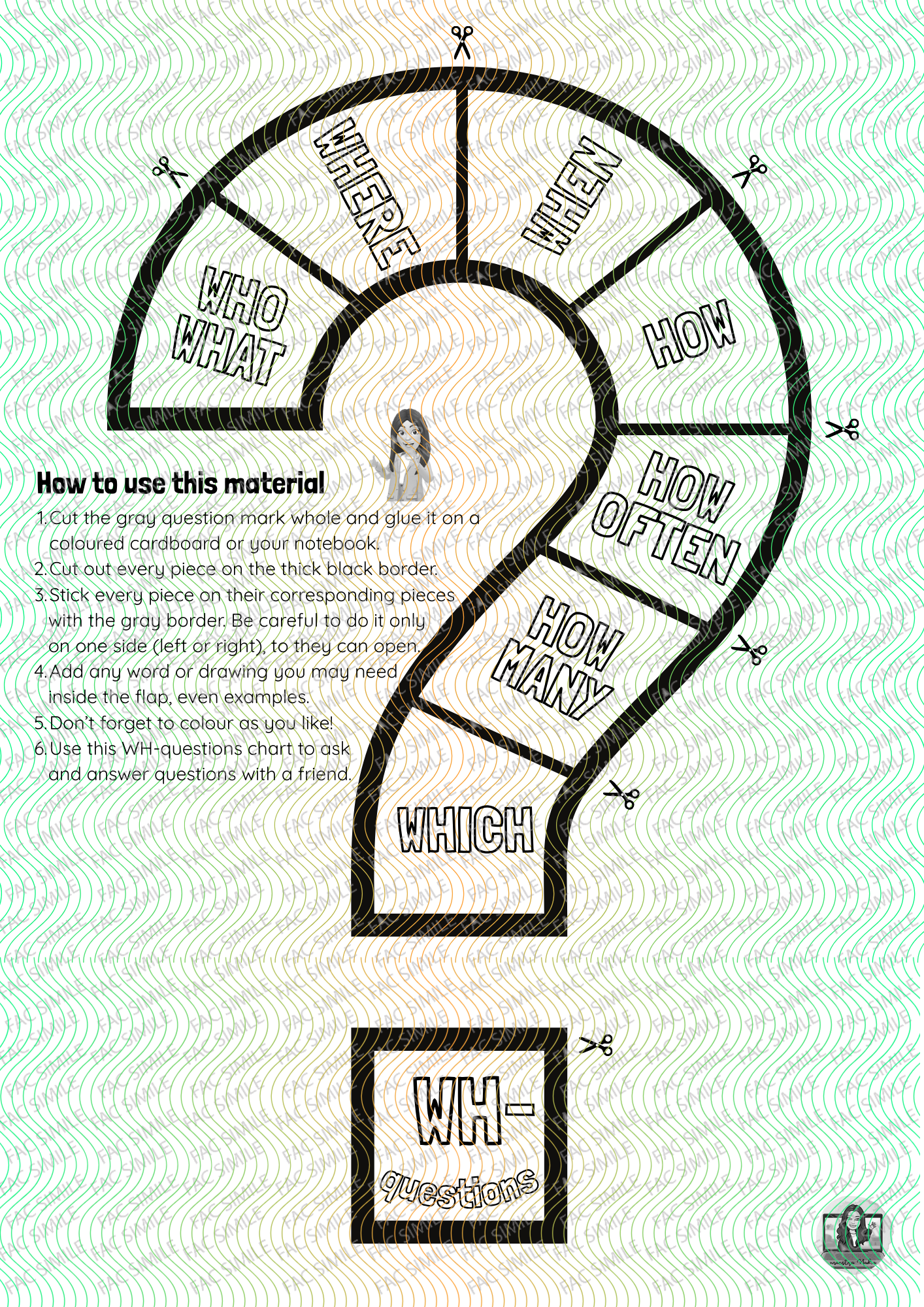 – un punto di domanda in stile lapbook da assemblare per avere riunite tutte insieme le parole chiave delle WH-questions e cosa aspettarsi nelle risposte