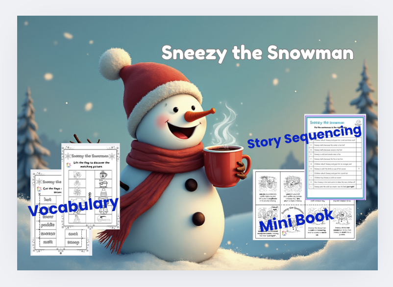 Porta la magia dell’inverno in classe con Sneezy the Snowman con’attività coinvolgenti e pronte all’uso per insegnare l’inglese in modo divertente, pratico e inclusivo!